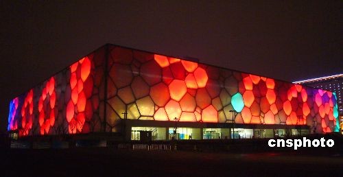 組圖:“水立方”姹紫嫣紅喜迎圣火到京