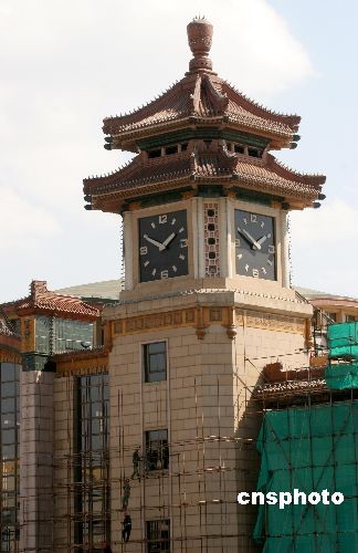 圖:北京站迎奧運(yùn)更換車站頂部琉璃瓦