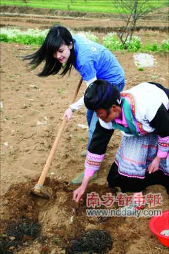 身為“樂施會(huì)中國(guó)發(fā)展基金”樂施大使(編者注:樂施大使不止一個(gè),胡杏兒、何韻詩等不少香港藝人都以這一身份積極參與樂施會(huì)的慈善活動(dòng))的周慧敏,于月前赴云南祿勸縣馬櫻花村探訪當(dāng)?shù)卮迕,親身體驗(yàn)樂施會(huì)在當(dāng)?shù)赝菩小爸俗灾狈鲐毠ぷ鞯某尚А?/p>