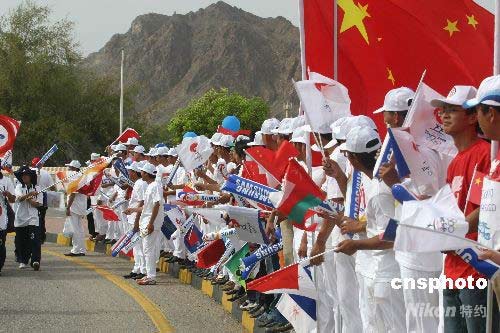 4月14日下午5時(shí),阿曼華人華僑迎接北京奧運(yùn)圣火。沈晨 攝