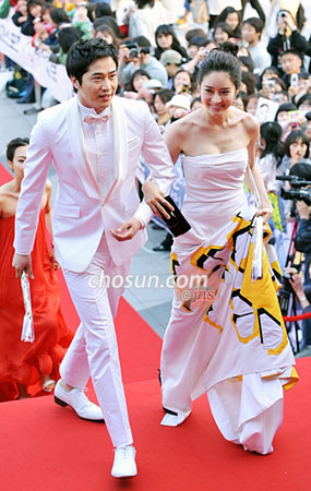 組圖:韓國(guó)百想藝術(shù)大獎(jiǎng)男女主角攜手入場(chǎng)(2)