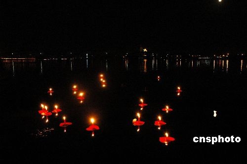 組圖:南陽市民放河燈為汶川地震災(zāi)民祈福