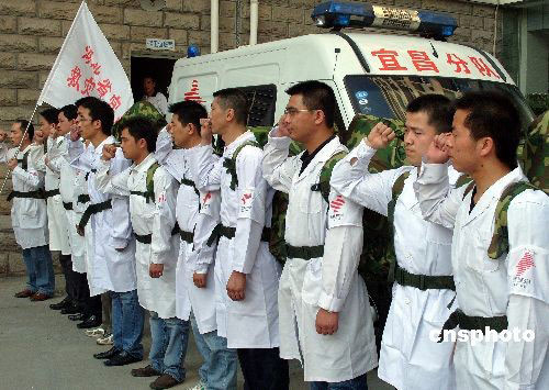 2008年5月19日,湖北宜昌市衛(wèi)生局、宜昌市疾病控制中心組建的首支衛(wèi)生防疫隊整裝宣誓,啟程奔赴四川地震災區(qū),他們將在地震災區(qū)從事環(huán)境衛(wèi)生消毒、疾病防控工作。