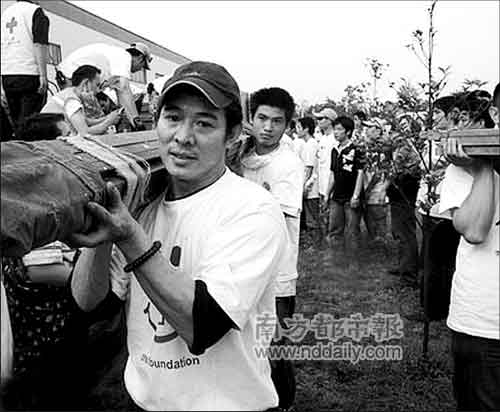 李連杰近日親赴汶川地震災(zāi)區(qū)前線。除了帶去3噸多救援物資、50多萬人的捐款,以及兩支救助志愿者隊(duì)伍外,更身體力行親自上陣,搬運(yùn)帳篷,參與重建。昨天上午,李連杰在成都出席“中國紅十字會(huì)李連杰壹基金5·12四川地震賑災(zāi)臨時(shí)指揮部”成立發(fā)布會(huì)。據(jù)悉,臨時(shí)指揮部已構(gòu)建起三個(gè)小組:統(tǒng)籌組、物資運(yùn)輸組和外聯(lián)組。李連杰表示,“明天第三批物資要過來,近期會(huì)在江油等地建立壹基金之家,幫助130多所學(xué)校的學(xué)生復(fù)課。”截止到昨天中午12時(shí),壹基金已籌集善款5654.57萬元人民幣,有超過66萬人次參與捐款。不少網(wǎng)友感動(dòng)地稱,李連杰是一個(gè)“超級(jí)英雄”。