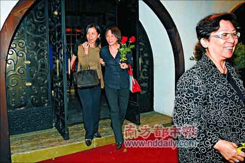 聚餐結束,偉仔嘉玲與偉仔母親(右)依依話別。