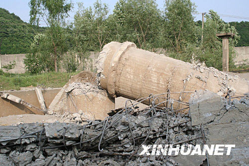 水均益:現(xiàn)在朝方的人員帶領我們來到剛才爆炸的現(xiàn)場,在實地勘察一下,看看爆炸的效果。這里就是剛才我們看見的爆炸前有大概30米高的,大概10層樓高的寧邊核設施的冷卻塔,我們現(xiàn)在來到現(xiàn)場看到已經(jīng)成了一片廢墟。應該說從我們這種距離的目測來看,這個爆炸的是非常成功的,因為已經(jīng)使得整個的冷卻塔徹底夷為平地,也就是說從某種意義上來講這個冷卻塔不可以再工作,有沒有辦法再修復。