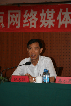 中共錦州市委書(shū)記劉志強(qiáng)向全國(guó)網(wǎng)絡(luò)媒體記者介紹錦州的發(fā)展?fàn)顩r。