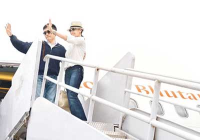 據(jù)香港“太陽報(bào)”報(bào)道,嘉玲、偉仔及好友林青霞昨晨現(xiàn)身不丹機(jī)場,準(zhǔn)備飛赴印度新德里,展開蜜月之旅。兩人于飛機(jī)臨起飛前20分鐘才抵機(jī)場,守候的傳媒一見兩人,即瘋狂涌前拍照,三人心情特別開心,笑容滿面。新娘嘉玲以悠閑打扮示人,她架著太陽眼鏡、戴帽及佩戴珍珠項(xiàng)鏈,但未見她戴上婚戒。其后他們到機(jī)場貴賓房獲關(guān)員款待,期間嘉玲還合十向傳媒打招呼,而當(dāng)他們過關(guān)登機(jī)時(shí),傳媒一窩蜂沖入禁區(qū)不斷拍照,但并沒有關(guān)員驅(qū)趕,反而吸引不少旅客圍觀看熱鬧。