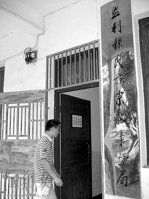 7月28日上午,記者輾轉找到監(jiān)利縣民族宗教事務局。該局辦公室門口一張落款日期為2007年10月的告示稱:“遵照省、市通知精神,停止辦理少數(shù)民族身份確認手續(xù)!币晃蛔苑Q剛剛借調(diào)來的工作人員介紹,這是因為當時來辦民族變更手續(xù)的人很多,“很煩,就在門口貼了這張公告!