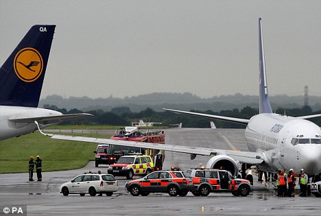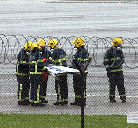 消防員發(fā)現(xiàn)一架飛機(jī)的受損翼尖