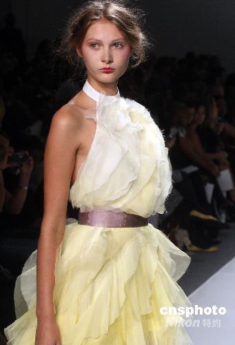 圖為世界名模參加中國女裝設(shè)計(jì)師羅崢作品展示。中新社發(fā) 錢興強(qiáng) 攝