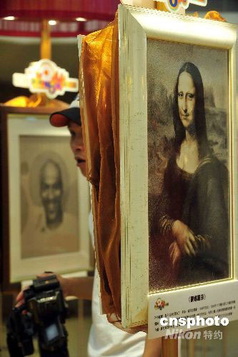 圖為展出作品《蒙娜麗莎》(九四年)及《籃球巨星喬丹》。