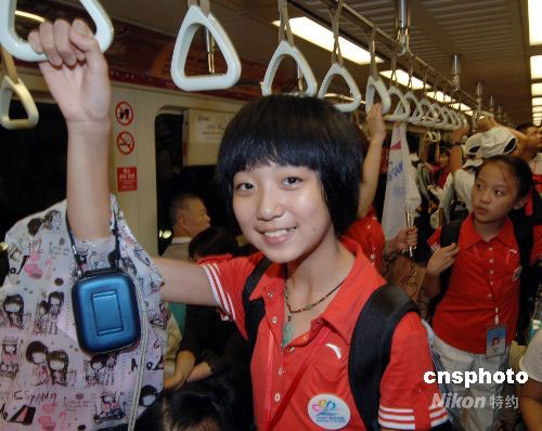 福建小營員乘坐臺北捷運、快樂體驗臺北捷運。中新社發(fā) 劉可耕 攝