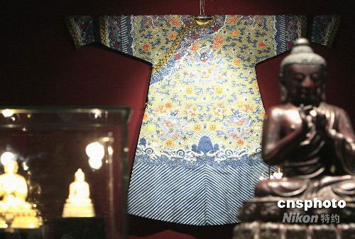 圖為晚清皇后御用明黃色緙絲萬字地十二章龍袍,價值一百萬港幣。