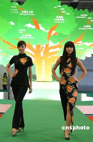 2008年10月16日,為期三天的第八屆中國國際糧油產(chǎn)品及設(shè)備技術(shù)展覽會在南京國展中心舉行。交易會期間舉行的用玉米蛋白纖維制成的精美時裝表演,給觀眾帶來視覺沖擊的同時也從新的角度展現(xiàn)了糧食深加工的魅力。中新社發(fā) 阿董 攝