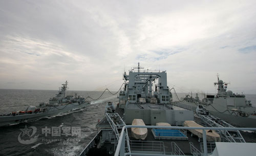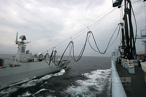 10月9日,南海艦隊(duì)某作戰(zhàn)支援艦支隊(duì)同某驅(qū)逐艦支隊(duì)數(shù)艘驅(qū)護(hù)艦,在二級(jí)海況下成功組織了高難度的“兩橫一縱”海上補(bǔ)給訓(xùn)練。他們克服風(fēng)大流急的影響,經(jīng)過多次協(xié)同演練,航行中的補(bǔ)給對(duì)接時(shí)間比最初縮短了10多分鐘,海上應(yīng)急支援能力得到提高。 中國軍網(wǎng)發(fā) 繞燕文攝