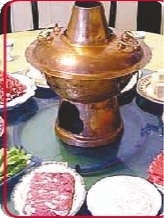 壹條龍經(jīng)營涮羊肉已有220年的歷史,因其一直延續(xù)傳統(tǒng)的銅火鍋吃法,堪稱京城涮羊肉“正宗”,特點有四:一是選肉精,這里的內(nèi)蒙古專供灘羊,粉肉白腰,香而不膻,肉質(zhì)鮮美。二是加工細(xì),選切羊肉時,要先在一層錫箔上放好天然冰,再把羊腿放在冰上碼好,肉上蓋油布,油布上在壓冰,這樣經(jīng)過一天一夜的“壓肉”、“排酸”,切出來的肉片薄,自然打卷,形似刨花,又不失嫩香。肉切好后按黃瓜條、上腦、磨襠、小三叉、大三叉等不同部位裝盤,顧客可根據(jù)喜好選擇。三是作料全,除了辣椒油和醋之外,還有高級醬油、醬豆腐、小磨香油、糖蒜、米酒、酸菜等等。四是主食香,5公斤面要放1公斤芝麻,做出的燒餅多達(dá)18層,烙完后再上爐烘烤,外焦里嫩,香酥適口,加上一碗又細(xì)又勻的綠豆雜面,收盡油膩,那才叫實實在在的吃涮羊肉。壹條龍清真涮肉炭火鍋被評為“北京名火鍋”。