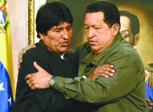 查韋斯于2001年提出“玻利瓦爾美洲國家替代計劃”,旨在加強拉美和加勒比地區(qū)國家間的經(jīng)貿(mào)合作和一體化,抵制美國倡導(dǎo)建立的美洲自由貿(mào)易區(qū)。該計劃目前有五個實施國,分別為委內(nèi)瑞拉、古巴、玻利維亞、尼加拉瓜和多米尼加。不過,多米尼加并未派遣代表參與此次會晤。