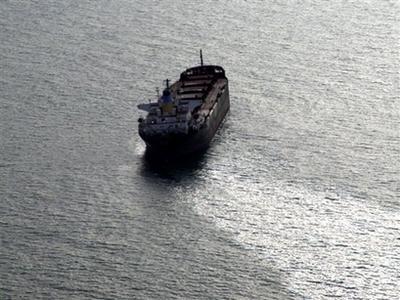 被撞的“賽羅斯”號拖著長長的油污。