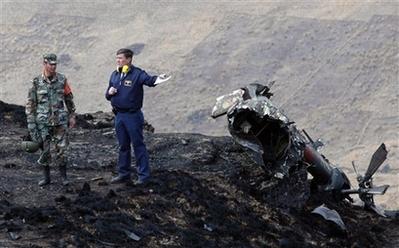 玻利維亞救援人員在直升機(jī)墜毀現(xiàn)場。