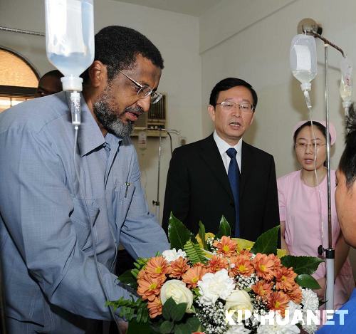祖貝爾·哈桑當天在中國駐蘇丹大使李成文的陪同下,到醫(yī)院探望了正在那里接受治療的4名獲救中國工人。他首先向獲救工人表示慰問,并希望他們早日康復。他還對另外5名中國工人在綁架事件中不幸遇害表示哀悼。