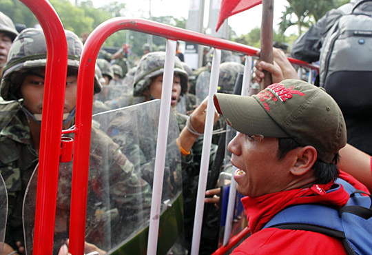 泰國反獨裁民主聯(lián)盟支持者11日包圍了總理阿披實位于首都曼谷的住所。另外,至少數(shù)百名反獨聯(lián)示威者強(qiáng)行沖進(jìn)東盟系列峰會媒體中心。