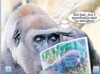 中新網(wǎng)8月29日電 據(jù)臺灣“今日新聞”報道,獨守“閨房”已經(jīng)很久的大猩猩阿菲,正在仔細端詳相親對象“阿波”的照片。這張照片是倫敦動物園園方送給阿菲的,他們打算介紹“阿波”給阿菲作未來男朋友。