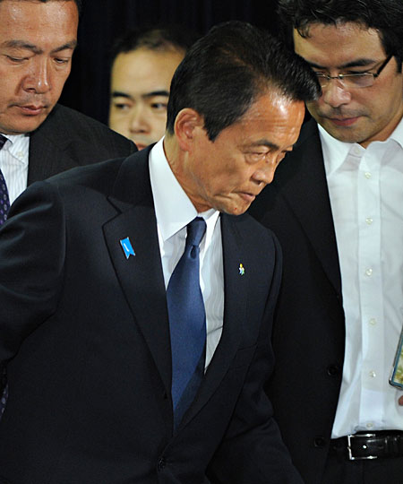 中新網(wǎng)8月30日電 綜合日本共同社消息,日本首相、自民黨總裁麻生太郎30日晚在接受電視采訪時就眾院選舉結(jié)果表示“未能消除(選民)對自民黨的不滿”,事實上承認了敗北。他并表示將辭去自民黨總裁職務。