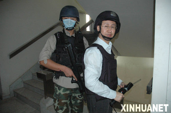 記者和中國(guó)使館人員以及武警雪豹突擊隊(duì)警衛(wèi)小組的戰(zhàn)士紛紛在煙塵中沖出房間。中國(guó)駐伊拉克大使常毅立刻把大家召集在屋頂最為堅(jiān)固的門(mén)廳中,指揮大家采取自救措施。在曼蘇爾飯店中餐廳工作的兩名中國(guó)廚師跑到使館求救。他們受了傷,身上沾滿鮮血,大使夫人和武警戰(zhàn)士立刻取來(lái)急救包為他們包扎。
