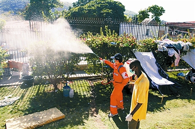 中國國際救援隊醫(yī)療分隊同時還在災(zāi)區(qū)開展了衛(wèi)生宣教、衛(wèi)生防疫工作。據(jù)侯世科介紹,海地總理府附近聚集了近千名災(zāi)民,震后衛(wèi)生條件極差,許多尸體沒有及時掩埋,災(zāi)民缺少食物、藥品,隨時可能出現(xiàn)腸道傳染病等疾病的蔓延。中國醫(yī)護人員對300多平方米的災(zāi)民聚集點進行了噴灑消毒!拔覀償y帶的消毒藥用得很快,明天我們會帶更多的藥物去現(xiàn)場!