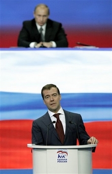 梅德韋杰夫在推舉他成為總統(tǒng)候選人會議代表投票后的統(tǒng)一俄羅斯黨會議上發(fā)言時說:“現(xiàn)在俄羅斯存在的這種機會是百年一遇才降臨到我們這個強大復雜的國家的!