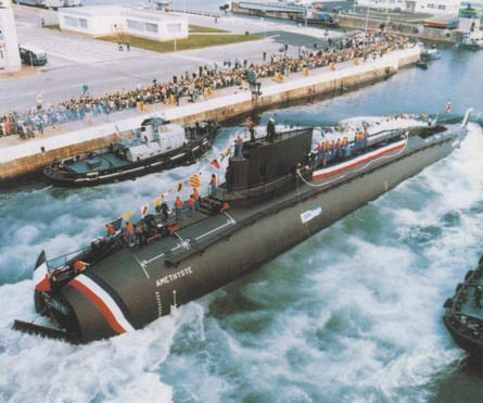 法國(guó)第一代戰(zhàn)略核潛艇“可畏”號(hào)下水儀式(資料圖)
