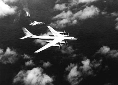 據(jù)美軍官員透露,圖-95首次飛越“尼米茲”號后,并沒有就此罷手,對“尼米茲”航母又進行了第二次空中飛越,隨后開始返航。負(fù)責(zé)監(jiān)視的F-18戰(zhàn)斗機編隊只好悻悻地回到航母上。在整個事件期間雙方?jīng)]有任何語言的溝通。
