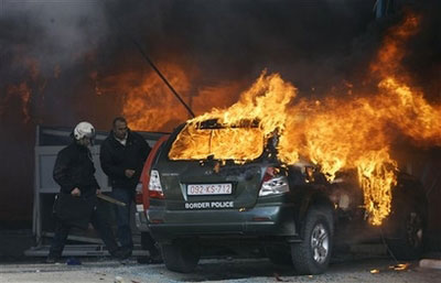 據(jù)英國廣播公司報道,大約一千名反對科索沃獨立的塞族抗議者周二(19日)沖擊亞林涅和巴尼亞兩個邊境過境點,并縱火燒毀了邊境站的海關(guān)和警察崗?fù)ぁ?