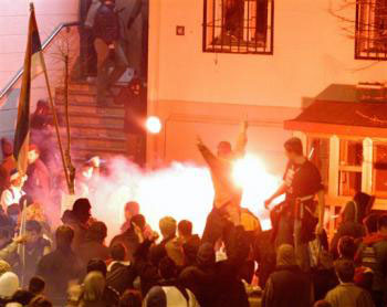 中新網(wǎng)2月22日電 綜合報(bào)道,對西方國家支持科索沃獨(dú)立表示憤慨的數(shù)千名塞爾維亞示威者21日在貝爾格萊德攻擊了一些西方國家的大使館。一些示威者攻擊和進(jìn)入了美國大使館官邸,并縱火焚燒部分使館建筑。美國使館當(dāng)時(shí)已閉館,并無人看守。
