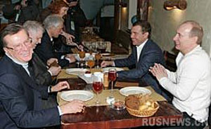當(dāng)他們五個(gè)人在名為“遠(yuǎn)征”的飯店就座后,普京向擔(dān)任國(guó)家公職前曾多次參加地質(zhì)考察的米羅諾夫詢問道:“您去過‘考察’多少年?”(在俄文中,“考察”和“遠(yuǎn)征”是同一個(gè)詞)。普京借此開玩笑建議聽取米羅諾夫的點(diǎn)菜經(jīng)驗(yàn)。在眾人的笑聲中米羅諾夫回答到:“18年,F(xiàn)在就開始第19個(gè)年頭了。”