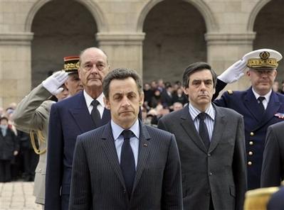 中新網(wǎng)3月18日電 綜合報道,法國政府17日為去世的第一次世界大戰(zhàn)最后一位老兵拉扎爾·蒙蒂塞利舉行國葬,以此向所有參加過一戰(zhàn)的法國軍人致敬。法國總統(tǒng)薩科齊和前總統(tǒng)希拉克17日上午在巴黎榮軍院參加為此舉行的閱兵儀式,全國各地政府機關(guān)和學(xué)校等建筑下半旗致哀。