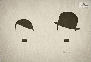 據(jù)英國媒體報道,在Hut Weber公司的這則廣告中,喜劇演員卓別林的圓頂禮帽下是希特勒標(biāo)志性的頭發(fā)和胡須。下方,一行英文寫道:“這就是帽子!