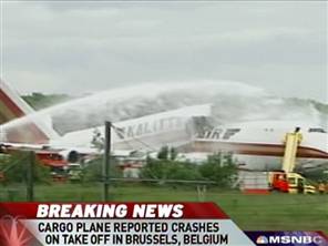 美運輸機在比利時機場起飛時墜毀并斷為兩截(圖)