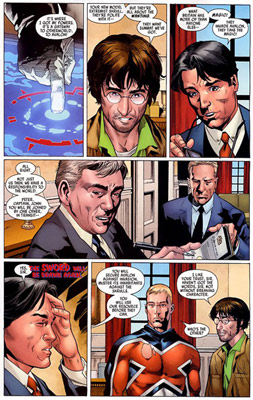 這部漫畫名為《英國隊(duì)長和軍情13處》。漫畫中,布朗成為虛擬英國情報(bào)機(jī)構(gòu)軍情13處的主管,商討對付外來入侵者的計(jì)策。所謂的入侵者,其實(shí)是一種名為“斯科魯”的神秘外星生物,它們擁有綠色的皮膚,具有隨意變身的能力,還擁有比地球人類更加先進(jìn)的科技。從漫畫中可以看到,布朗正在演講。他說:“所有英國超級(jí)英雄都在為軍情13處工作。”