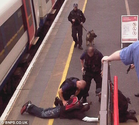 就在英國警方抓捕這名無辜男子時,一名在現(xiàn)場的乘客使用手機(jī)拍下了有關(guān)過程。有目擊者對記者說,“當(dāng)時有很多人都在排隊買票,但突然有多名全付武裝的警察沖進(jìn)車站,他們的人數(shù)大約有10個人,有些警察拿著手槍,另外還有一條警犬。我聽見有人說:不要讓任何人走下火車或者離開站臺。隨后火車站所有的出口都被封鎖了;疖嚨能囬T打開后,那名男子剛一走下站臺,就被命令趴在地上,他被要求伸開雙手并靠攏雙腿。警方對這名男子的背包進(jìn)行了認(rèn)真的搜查,然后又把他帶到一間廢棄不用的盥洗間,可能是對他進(jìn)行一步的搜查。這一幕真是讓人感到非?植。”