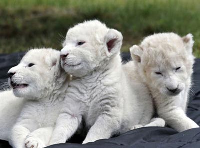 這次亮相的是其中3只小白獅,因?yàn)榈?只小獅子沒存活下來。