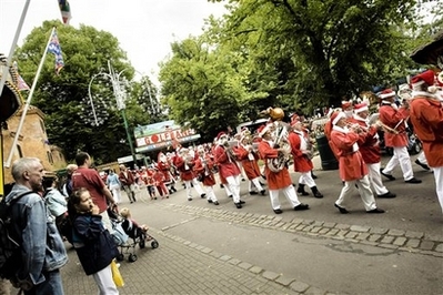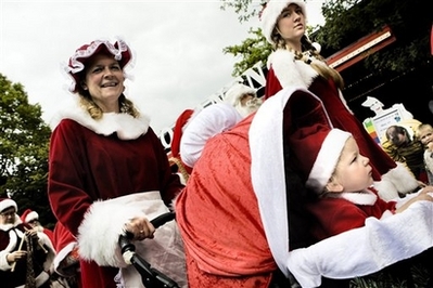 來自全世界將近140個(gè)圣誕公公,今天起在哥本哈根的一個(gè)游樂園,和粉絲同樂三天。今天的活動(dòng)高潮是圣誕老人的障礙賽,圣誕老人要比賽駕雪橇爬一座人工冰丘和煙囪。