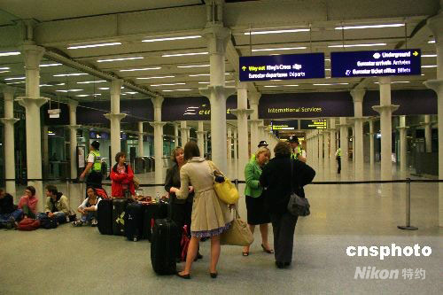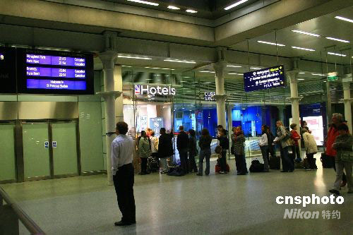 圖為11日晚,警察封鎖了歐洲之星火車(chē)的出發(fā)站臺(tái),現(xiàn)場(chǎng)有乘客焦急等候。