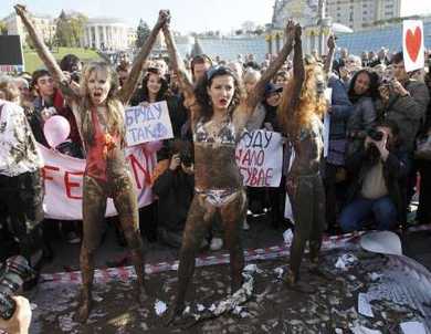 中新網(wǎng)10月20日電 綜合報道,一個名為“Femen”的烏克蘭青年組織19日走上基輔街頭,表演泥漿摔跤節(jié)目,以抗議“骯臟的政治和選舉技術”。女青年希望以這一方式吸引人們的注意,加入抗議提前議會選舉的行列。