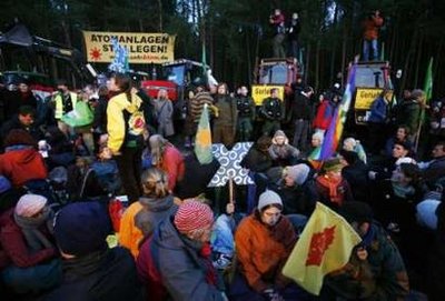 當(dāng)天,大約有1.6萬(wàn)名示威者進(jìn)行抗議。為保護(hù)當(dāng)天運(yùn)送核廢料的列車(chē),德國(guó)警方派出了1萬(wàn)余名警力。