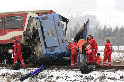 中新網(wǎng)布拉格2月21日電 一輛帶有兩節(jié)車(chē)廂的客運(yùn)列車(chē)21日上午在斯洛伐克中部小村莊波羅姆卡-布雷茲諾一處沒(méi)有設(shè)置柵欄的路口以70公里時(shí)速撞上一輛載有37名旅游者和滑雪者的公共汽車(chē),造成車(chē)上人員至少12死20傷。
