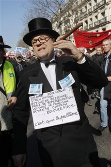 據(jù)悉,這場大罷工的目標(biāo)是迫使法國總統(tǒng)薩科齊在經(jīng)濟危機日益加深之際,提高工資、保障工作權(quán)。