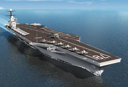 紐波特紐斯船廠是目前世界上唯一能夠建造大型航母的船廠!案L亍奔壓侥概潘款A計約100000噸,長約1100英尺。新一代航母的設計包括新的飛行甲板,并改進了武器搬運系統(tǒng),采用先進阻攔裝置、最新開發(fā)的電磁飛機彈射系統(tǒng)、新設計并簡化的核動力裝置,以及新的發(fā)電裝置。