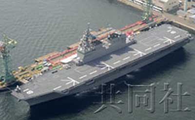 中新網(wǎng)3月18日電 據(jù)日本共同社報(bào)道,日本海上自衛(wèi)隊(duì)第一艘搭載直升機(jī)的航母型護(hù)衛(wèi)艦“日向”號(hào)日前建造完成,18日上午在橫濱市磯子區(qū)造船所舉行了交付儀式。